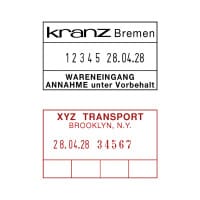 - Schriftarten: Block (Datum) / Antiqua (Nummer)