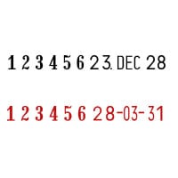 - Schriftarten: Antiqua (Nummer) / Block (Datum)